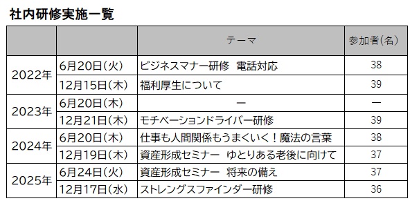 あわせて、従業員の円滑なコミュニケーションや業務遂行を支援するために能力開発の研修を