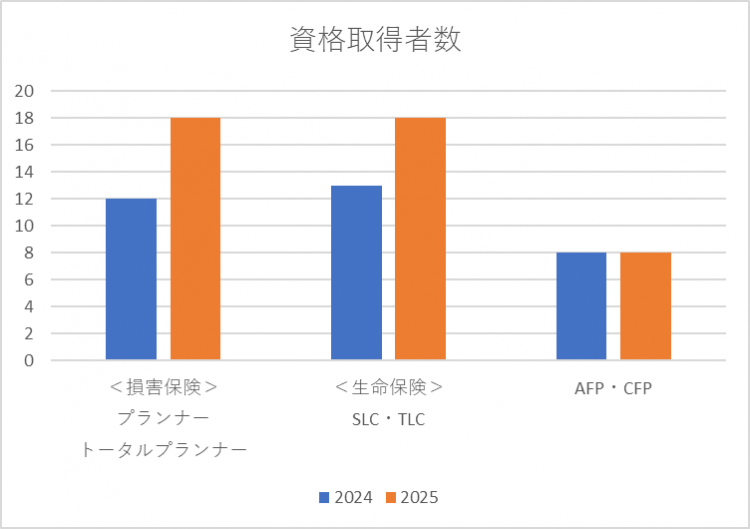 2025年度は、損害保険プランナーが6名、SLC・TLCが5名、資格取得いたしました。