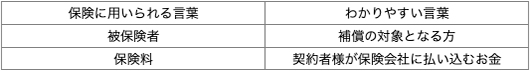 ・保険商品を説明する際には、必要に応じて専門用語を使用せず下記のようにわかりやすい言葉に置き換えて説明を行っています。