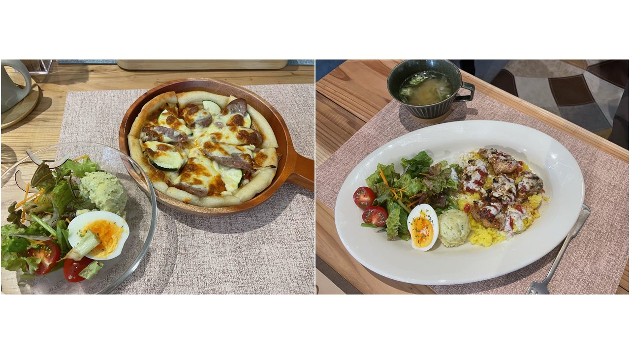 現在は、米粉ピザとチキンオーバーライスのランチメニュー2種類と、ドリンクメニューとスイーツメニューが豊富に用意されています。