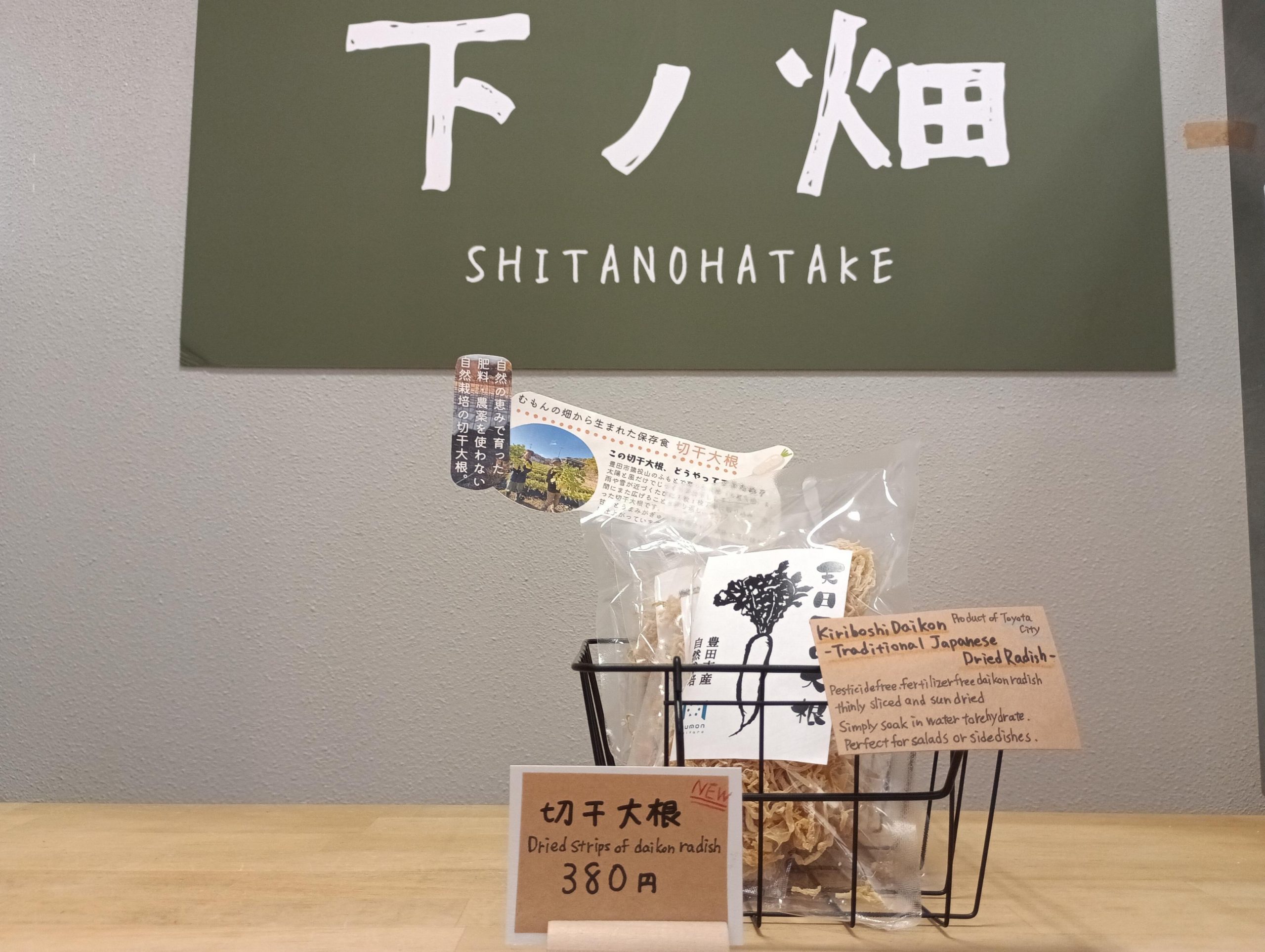 私が取材に伺った際は、切り干し大根の収穫作業をするということでその様子を見学させてもらいました。その場で、収穫したての切り干し大根をいただきましたが、噛めば噛むほど甘みが増してとても美味しかったです!収穫した切り干し大根は、モリコロパークのアイススケート場入口の横「下ノ畑」という売店で販売されました。